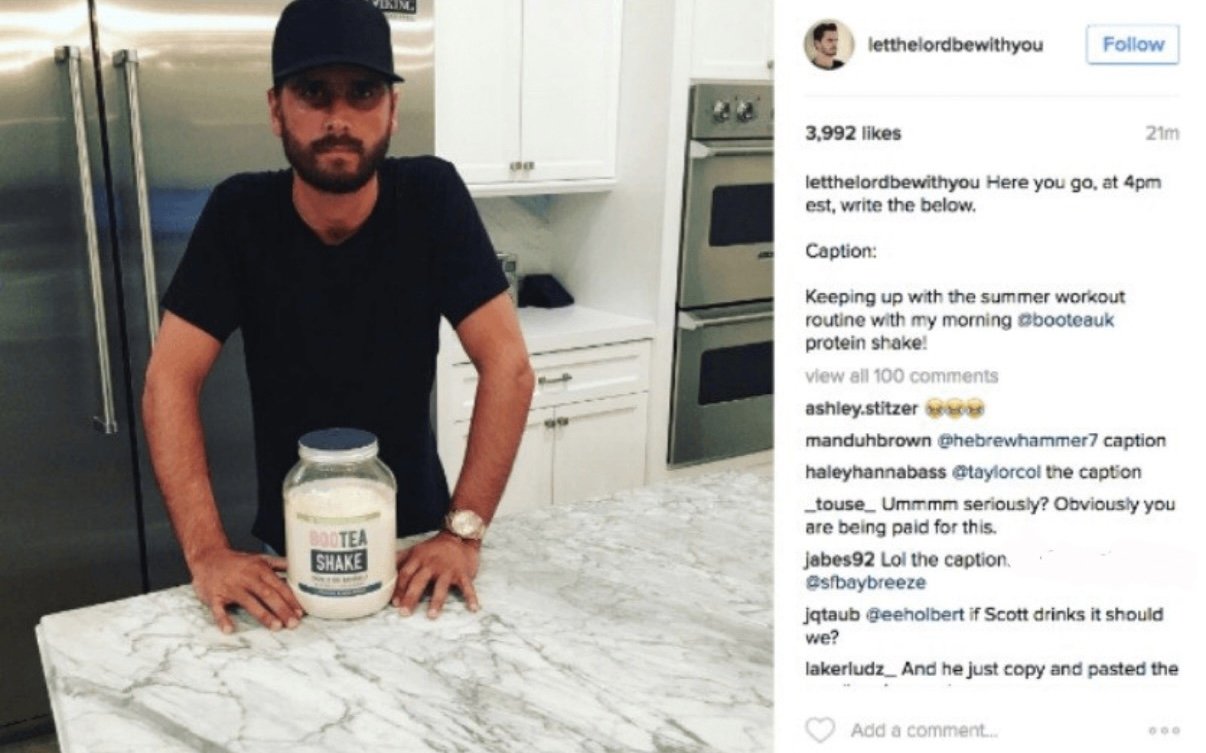 When social media influencers or brand ambassadors endorse a product, their content needs to be genuine or real otherwise it may have a negative impact. Bootea, a fitness and detox brand had to make their mistake first in order to learn from it. The brand had partnered with Scott Disick who is known for his appearance in the reality TV series Keeping up with the Kardashians. Disick missed the mark when he posted on Instagram with the direct instructions given to him by the brand. This shows the audience that he did not generate a personal caption putting the brand in an embarrassing position.